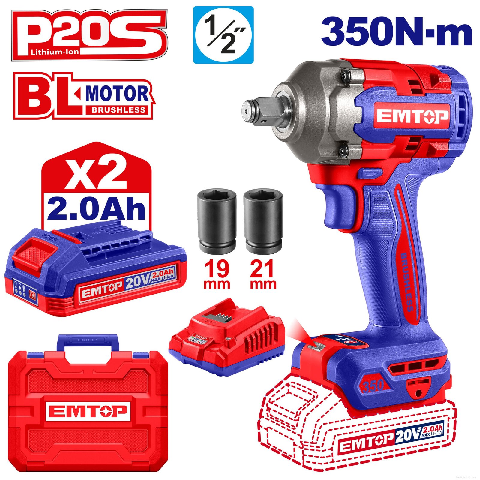 مفتاح صدمات لاسلكي EMTOP 20V – 1/2 بوصة